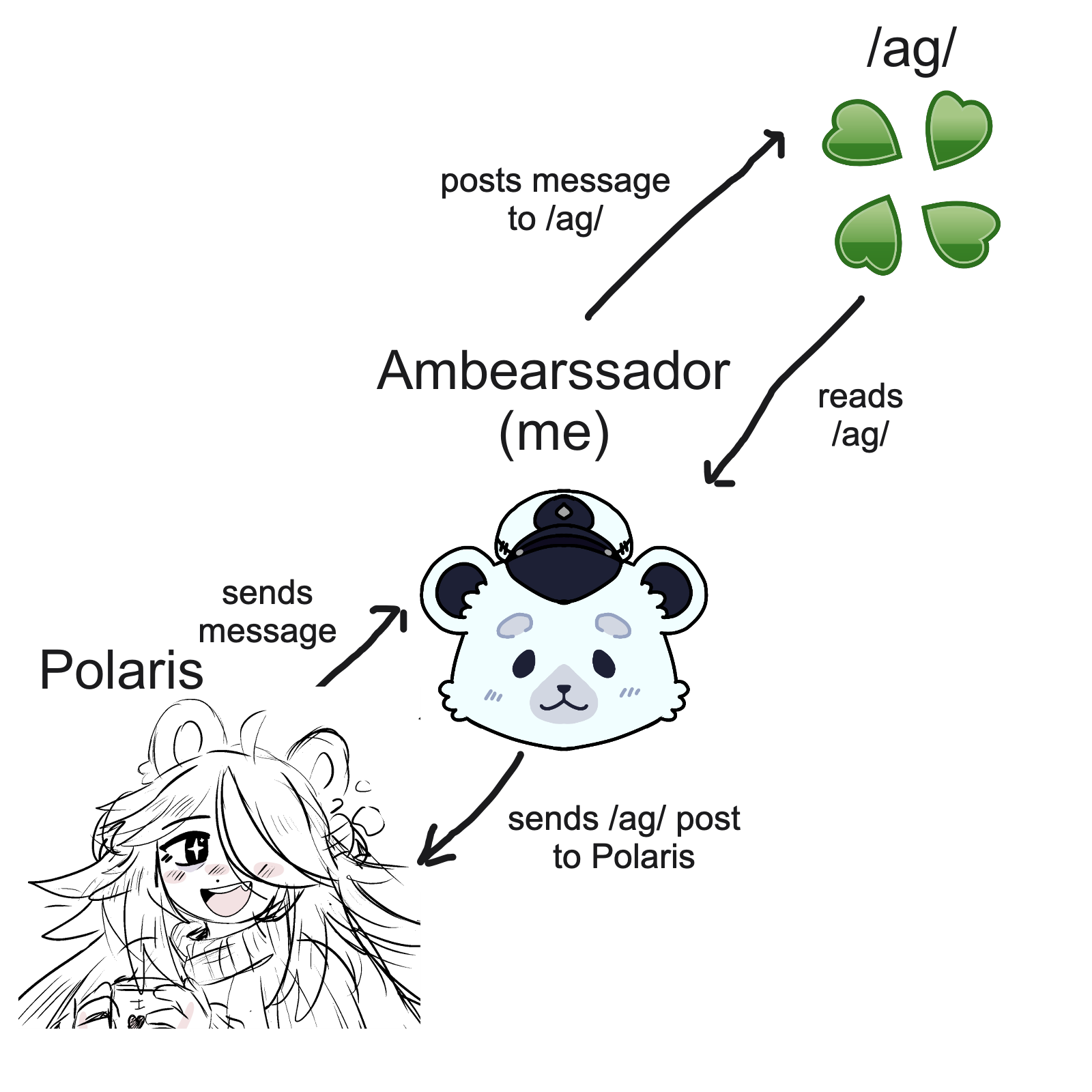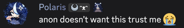 >>107194937>>107197135>>107197645What is actually happening with Polaris and /ag/?As noted by >>107195039 , Nova Polaris is not directly on 4chan as far as I know. Instead, I am relaying Polaris related messages to somewhere where she can read them. Why do this? Polaris explicitly stated multiple times that if there is a message about her on 4chan, then relay it to her. 4chan is incredibly unintuitive to use. If Polaris has significant interest on what 4chan has to say about her, she should be allowed to read what 4chan has to say about her. We even have precedence with Polaris encouraging these anonymous messages through the straw page.