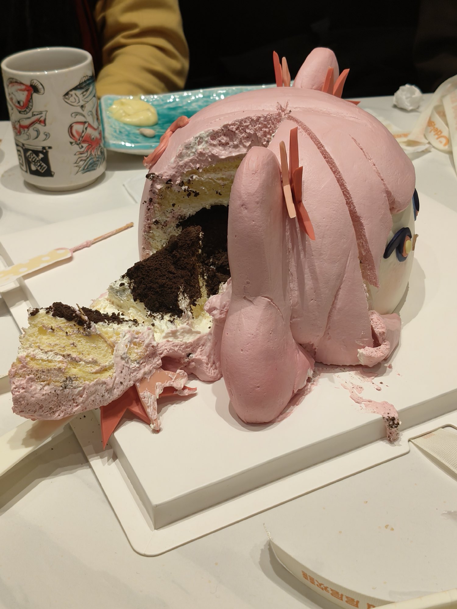 If, at a party, there were a life-sized nude cake figure of your oshi that everyone would share, who would she be, what pose would she be in, and which part would you eat first before others? Would you refuse to eat her face?