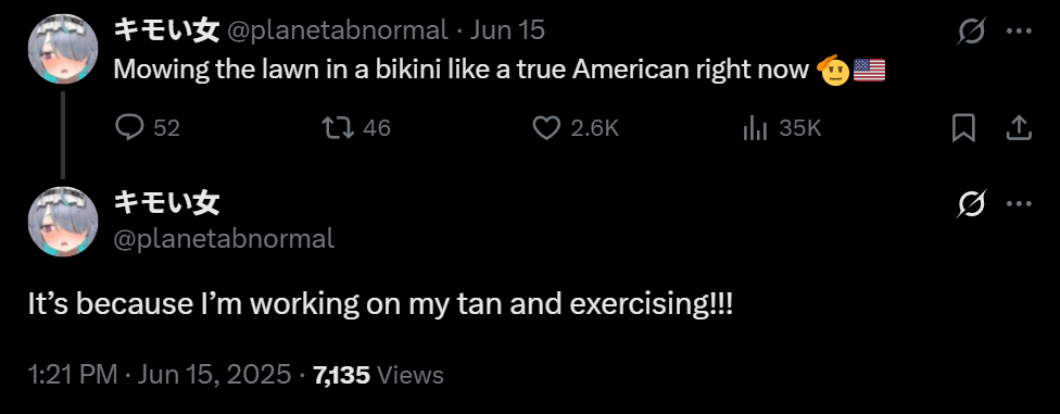 that's her playful ragebaiting voice