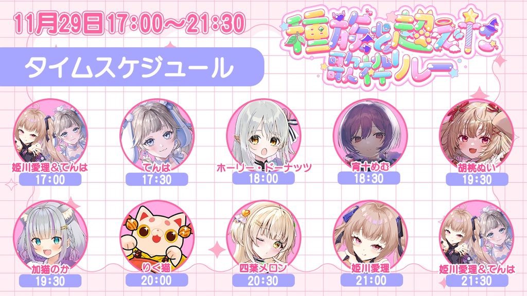 11/30: AWA UPSTREAM 2025 AUTUMN (Enogu, Aikatsu Academy! Streaming Club, Tenri, EMUNEKO, Kisara, Yumeha Hime) https://www.zan-live.com/en/live/detail/10649