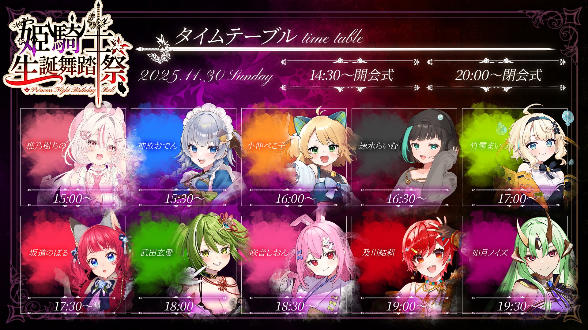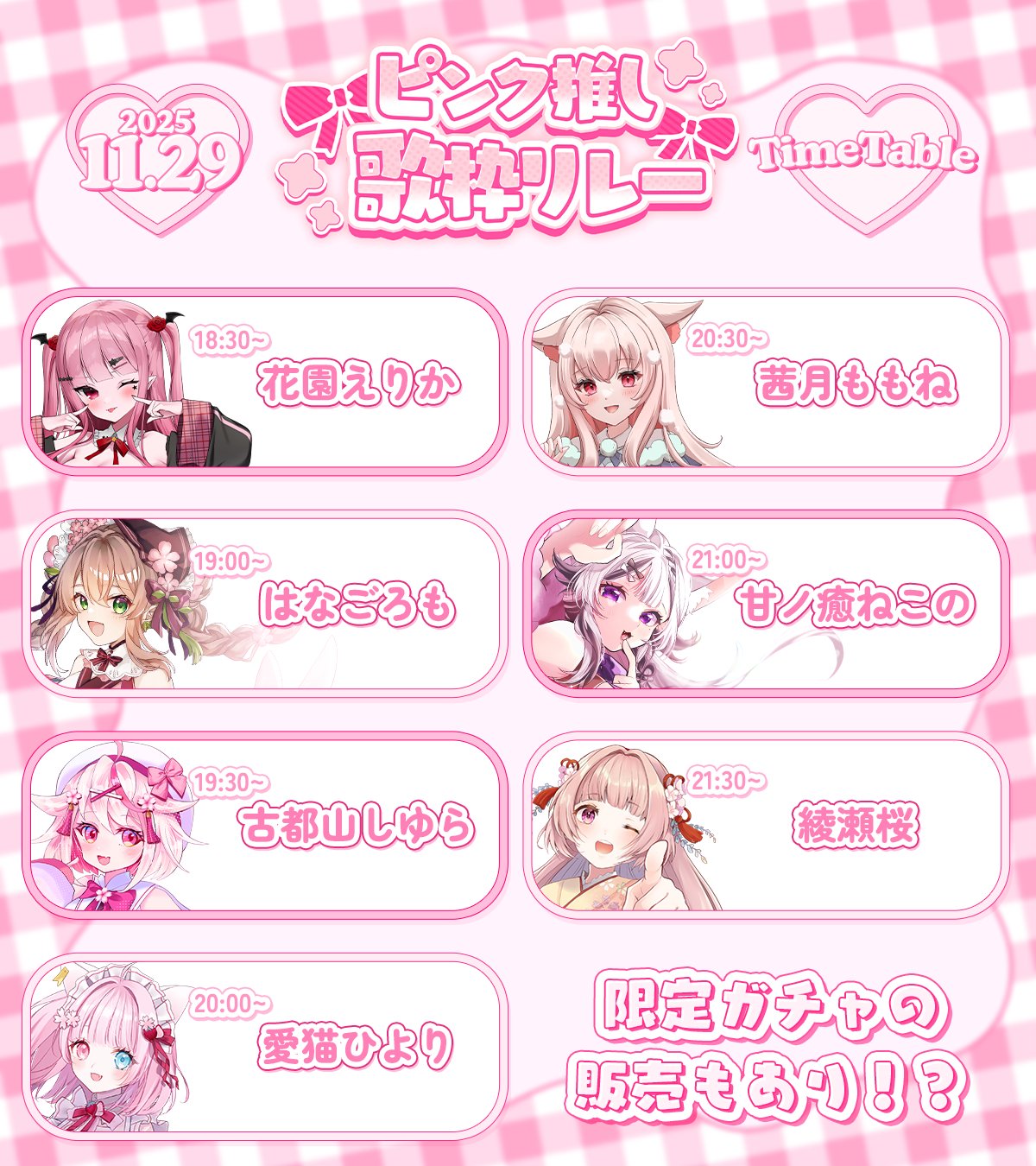 12/13: Rock on V: December (Momose Hibana, Inamori Sakuya, shin, Yunagi Yosuga, Goho Batsuko-chan, Aoi Sizuku, Meido Shirone, Bankyako) https://www.zan-live.com/en/live/detail/10684