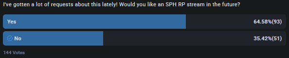 Once SPH becomes normalized who do you wanna see do one next? I think Ruru would be fun with her comparing her own to yours and mogging you over it