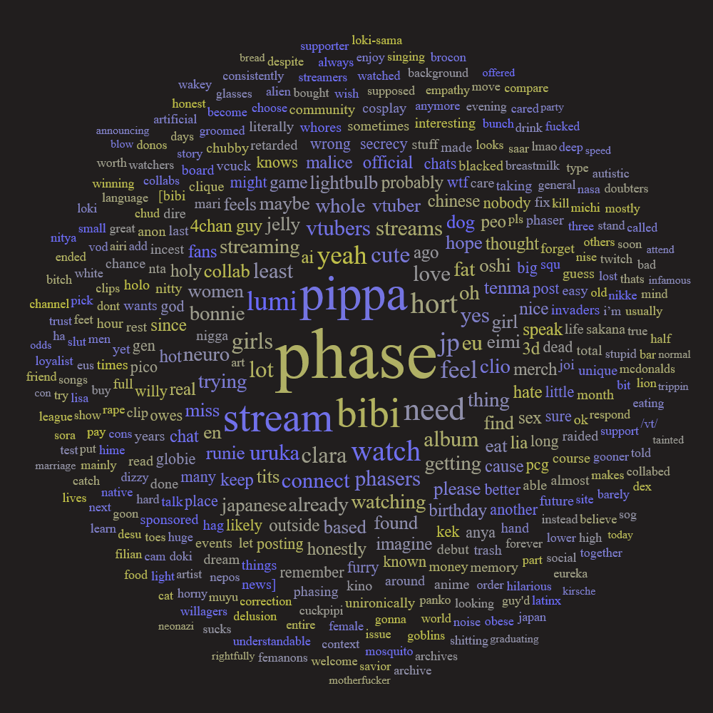 >>107158915I'm a 2023 newfag actually, got into chuubas through Neuro clips on YT but never became an actual stream watcher because Twitch is gay and unusable. Eventually Pippa clips hit my algorithm, probably two or three months before the Euphoria debuts iirc.Been on this stupid website since I was 17, off and on. /pcg/ is a vastly superior daily lurk than my old home boards lmao