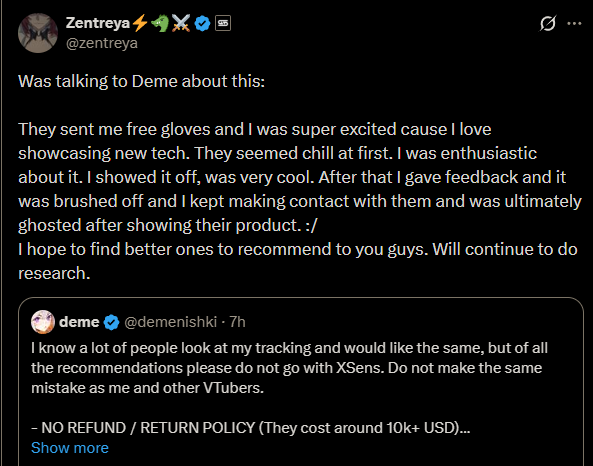 The gloves alone are 10k. A full set of sensors and a good camera that works with them in a soundproofed room with a dedicated computer for uploading and encoding and one for actually running games and etc. The full new setup she's talked about many dozens of times now.