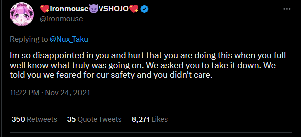 there are several cases of them outright ignoring (mouse) doxx too.