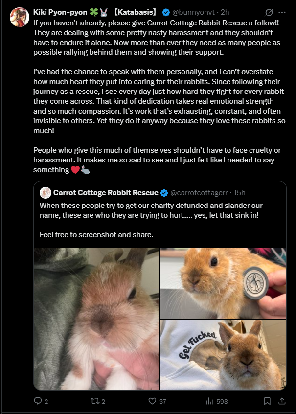 >>107189393Why is there controversy around a rabbit rescue?