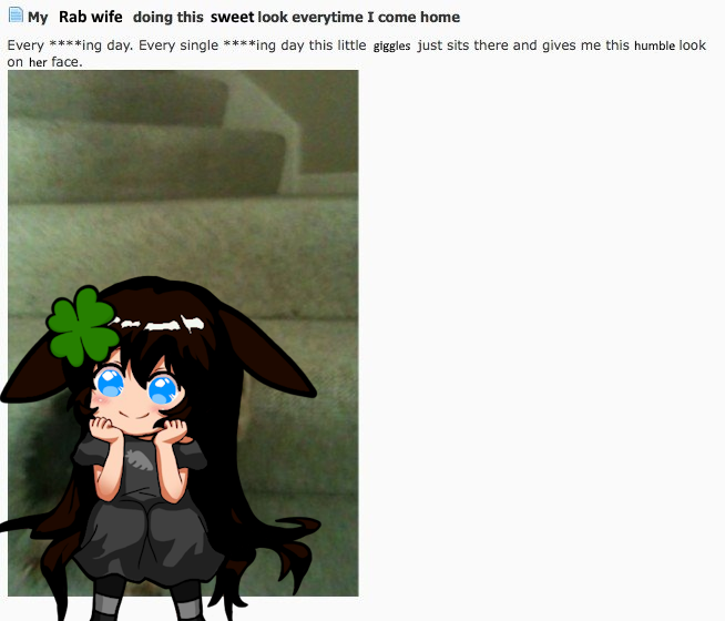 >>107189471>>107189506i will note that i have seen some bunny-related social media circles that tend toward really batshit neurotics who assume the worst about all other rabbit owners or people, this is starting to look like that