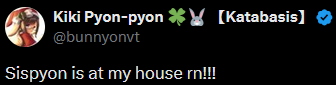 Royal Rab EditionThis thread is to discuss /vt/‘s very own Kiki.>LATEST STREAMhttps://www.youtube.com/watch?v=G6L1ivTIraA>Who is Kiki?Kiyomi Pyon-Pyon, or Kiki for short is an adorable autistic Aussie chuuba. She's a wicked bright, and super sweet girl with a passion for animals and her champyons!https://youtu.be/1vjStYtGkJshttps://youtu.be/PyeTpOgLWiY>Carrdhttps://kikipyonpyon.carrd.co/>Kiki Lore and Intro Videoshttps://youtu.be/W-bLrgrXdSghttps://youtu.be/eweZ2EDK7v4https://youtu.be/wxL2YkOhaMs>Merch (*NEW: Katabasis Merch, Soap, Butt Mousepad, Keychains, Stickers,* Deskmat, Magnets, Coasters, JP Snack Pack, Tapestry, Standee, Daki)https://memebars.com/collections/the-katabasis-collectionhttps://weebe.net/katabasis-summer-collection/ code: KATABASIS5 (5% off)https://shop.moso.moe/kiki-pyon-pyon/https://weebe.net/kikipyonpyon/shop/https://www.capippalisttradeguild.com/product/13x19-print-kiki-feet-rishartist-/264https://www.capippalisttradeguild.com/product/9in-dakimakura-keychain-kiki-pyonpyon/263https://diipoo.com/shop/kiki-daki/>Danboorus, Aggie, & /i/ thread (Art/Fan Content)https://pyon.websitehttps://booru.rabbalabs.com/Previous Aggies: https://pyon.website/pools/1>>>/i/723670>Newest Cover: Inside Identity - Black Raison d'être (Katabasis MV)https://www.youtube.com/watch?v=BgzyBpO8Ouk>Kiki's Covers and Songshttps://youtu.be/2tPTie7UmyUhttps://youtu.be/Zpdu7yFk1tAhttps://youtu.be/24K-LkEhLqkhttps://youtu.be/8v9OUHzxy_ohttps://youtu.be/7JSSOnss85Yhttps://youtu.be/FzMJ0LWTUYQhttps://youtu.be/TXi-SDZJEwEhttps://youtu.be/XLKYnOALHac>ASMR Collection, Voicepacks & AI LoRAshttps://rentry.org/7uqu8mvq>/pyon/ Cytube (Community Watchalongs):https://stream.rabbalabs.com/r/pyon>Kiki Notifications RSS feed w/ instructionshttps://rabbalabs.com/rss/feed.xmlhttps://pastebin.com/nGsaGEZh>Misc. Rabbalabs links (timestamp tagger, VOD search, /pyon/ archive)https://rabbalabs.com/tagger/https://rabbalabs.com/vods/https://rabbalabs.com/pyondex/>/pyon/craft serverhttps://rentry.org/pyoncraftguide>Champy Creative CornerChampy Creations playlist: https://www.youtube.com/playlist?list=PLuUil1VBO4o7PpCUPwTKvj_4l7UBE8toPMusic (Kikikore): https://www.youtube.com/playlist?list=PLuUil1VBO4o5iNrFvZm8eMQGtj9xnacjMKiki Ambient Album: https://drive.google.com/file/d/18C-GvhOs5uG90xx4Et-yIF2QJHSUV0Eg/viewAnimations: https://www.youtube.com/playlist?list=PLuUil1VBO4o4TyrbqW87D2aygzbUMLMVsKiki Koikatsu Archive: https://mega.nz/folder/Bx4XXYTb#o7L7D5bg4XverGHQ03upkQKiki Noises Sound Effects Library: https://mega.nz/folder/LnRjWaoL#UL6z0KJcBwRPBapmRdAg2QKikinese: https://files.catbox.moe/yv1xre.pdfKiki Doom 2 WAD: https://files.catbox.moe/pd9lr9.zip/pyon/ Worms game: https://mega.nz/folder/46VjwSRS#DihAVX2GfbOvMiY0X_1nEASuper Champ Bros (SMB rom hack): https://files.catbox.moe/0tbbps.zipAoE2 Kiki civ mod: https://www.ageofempires.com/mods/details/316335/https://www.ageofempires.com/mods/details/316395/Kiki DoW Banners/Badges: https://files.catbox.moe/n6qe1d.zip/pyon/ Tetris: https://seburd.itch.io/tetrispyon>Related places>>>/vt//freak/ >>>/vt//vrt/>Last thread>>107133472