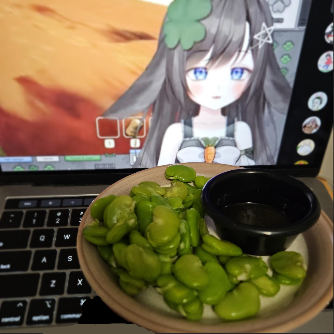 steamed some broad beans for a late night snack, eating with some sesame oil and sea salt