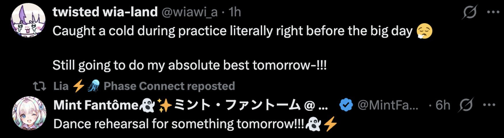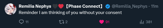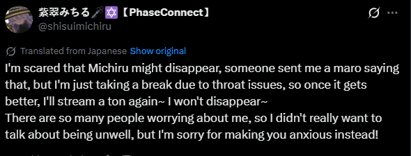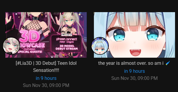 ▼ Phase Connect LinksOfficial Website: https://phase-connect.comOfficial Schedule: https://schedule.phase-connect.comOfficial Twitter: https://x.com/PhaseConnect | https://x.com/PhaseConnectJPOfficial Character References: https://rentry.org/pcgreferencesOfficial Twitch Archive Channels: https://rentry.org/pcgtwitcharchiveUnofficial Phase Connect Archives: https://rentry.org/pcgunofficialarchive––––––––––––––––––––––––––––––––––◆【Lia】https://x.com/rinkouashelia | https://youtube.com/RinkouAshelia | https://twitch.tv/asheliarinkou◆【Utatane Nasa】転寝ナサ (JP) https://x.com/UtataneNasa | https://youtube.com/UtataneNasa | https://twitch.tv/utatanenasa◆【Hakushika Iori】白鹿いおり (JP + EN) https://x.com/hakushikaiori | https://youtube.com/HakushikaIori | https://twitch.tv/iorihakushika◆【Fujikura Uruka】https://x.com/fujikurauruka | https://youtube.com/FujikuraUruka | https://twitch.tv/fujikurauruka◆【Shisui Michiru】紫翠みちる (JP) https://x.com/shisuimichiru | https://youtube.com/ShisuiMichiru | https://twitch.tv/michiru_shisui◆【Tenma Maemi】https://x.com/tenmamaemi | https://youtube.com/TenmaMaemi | https://twitch.tv/tenma◆【Pipkin Pippa】https://x.com/pipkinpippa | https://youtube.com/PipkinPippa | https://twitch.tv/pippa––––––––––––––––––––––––––––––––––◆【Kaneko Lumi】https://x.com/kaneko_lumi | https://youtube.com/KanekoLumi | https://twitch.tv/kanekolumi◆【Fuura Yuri】[Terminated] https://x.com/AmarisYuri | Archive: https://youtube.com/@TheNationalFuuraYuriArchive◆【Dizzy Dokuro】https://x.com/dizzydokuro | https://youtube.com/@dizzydokuro | https://twitch.tv/dizzydokuro◆【Jelly Hoshiumi】https://x.com/jellyhoshiumi | https://youtube.com/@jellyhoshiumi | https://twitch.tv/jellyhoshiumi◆【Ember Amane】https://x.com/emberamane | https://youtube.com/@EmberAmane | https://twitch.tv/emberamane◆【Clio Aite】https://x.com/ClioAite | https://youtube.com/@ClioAite | https://twitch.tv/clioaite◆【MariMari_en】https://x.com/MARIMARI_EN | https://youtube.com/@MARIMARI_EN | https://twitch.tv/marimari_en◆【Eepy Sleepy】https://x.com/EepySleepyCh | https://youtube.com/@EepySleepyCh | https://twitch.tv/EepySleepy––––––––––––––––––––––––––––––––––◆【Remilia Nephys】https://x.com/Remilia_Nephys | https://youtube.com/RemiliaNephys | https://twitch.tv/remilianephys◆【Chisaka Airi】https://x.com/ChisakaAiri | https://youtube.com/ChisakaAiri | https://twitch.tv/chisakaairi◆【Amanogawa Shiina】https://x.com/AmanogawaShiina | https://youtube.com/AmanogawaShiina | https://twitch.tv/amanogawashiina◆【Himemiya Rie】https://x.com/HimemiyaRie | https://youtube.com/HimemiyaRie | https://twitch.tv/himemiyarie◆【Erina Makina】https://x.com/ErinaMakina | https://youtube.com/ErinaMakina | https://twitch.tv/erinamakina◆【Komachi Panko】https://x.com/komachipanko | https://youtube.com/KomachiPanko | https://twitch.tv/komachipanko––––––––––––––––––––––––––––––––––◆【Runie Ruse】https://x.com/RunieRuse | https://youtube.com/@RunieRuse | https://twitch.tv/RunieRuse◆【Eimi Isami】https://x.com/eimiisami | https://youtube.com/@eimiisami | https://twitch.tv/eimiisami◆【Muu Muyu】https://x.com/Muu_Muyu | https://youtube.com/@MuuMuyu | https://twitch.tv/MuuMuyu◆【Hikanari Hina】https://x.com/HikanariHina | https://youtube.com/@HikanariHina | https://twitch.tv/HikanariHina◆【Saya Sairroxs】[Hort] https://x.com/sayasairroxs | https://youtube.com/@sayasairroxs | https://twitch.tv/sayasairroxs––––––––––––––––––––––––––––––––––◆【Kannagi Loki】巫ロキ (JP) https://x.com/kannagiloki | https://youtube.com/@kannagiloki ◆【Kokoromo Memory】恋衣めもり (JP) https://x.com/kokoromomemory | https://youtube.com/@kokoromomemory_ | https://twitch.tv/kokoromomemory◆【Gram Pico】倉夢ぴこ (JP) https://x.com/grampico_ | https://youtube.com/@grampico | https://twitch.tv/grampico◆【Ayase Yuu】絢世ユウ (JP) https://x.com/ayaseyuuu | https://youtube.com/@ayaseyuu | https://twitch.tv/ayaseyuu_◆【Kaminari Clara】歌美鳴クララ (EN + JP) https://x.com/kaminariclara_ | https://youtube.com/@kaminariclara | https://twitch.tv/kaminariclara––––––––––––––––––––––––––––––––––◆【Malice Evermore】https://x.com/MaliceEvermore | https://youtube.com/@maliceevermore | https://twitch.tv/maliceevermore◆【Nitya Nil】https://x.com/Nitya_Nil | https://youtube.com/@Nitya_Nil | https://twitch.tv/nitya_nil◆【Wilhelmina Frost】https://x.com/wilhelminafr0st | https://youtube.com/@wilhelminafrost | https://twitch.tv/wilhelminafrost◆【Bibi Biscuit】https://x.com/BibiBiscuitCh | https://youtube.com/@bibibiscuitch | https://twitch.tv/bibibiscuitch◆【Anya Nyabyss】https://x.com/AnyaNyabyss | https://youtube.com/@AnyaNyabyss | https://twitch.tv/anyanyabyss◆【Sinon Sinfonia】https://x.com/SinonSinfonia | https://youtube.com/@SinonSinfonia | https://twitch.tv/sinonsinfoniaPrevious Thread: >>107184680