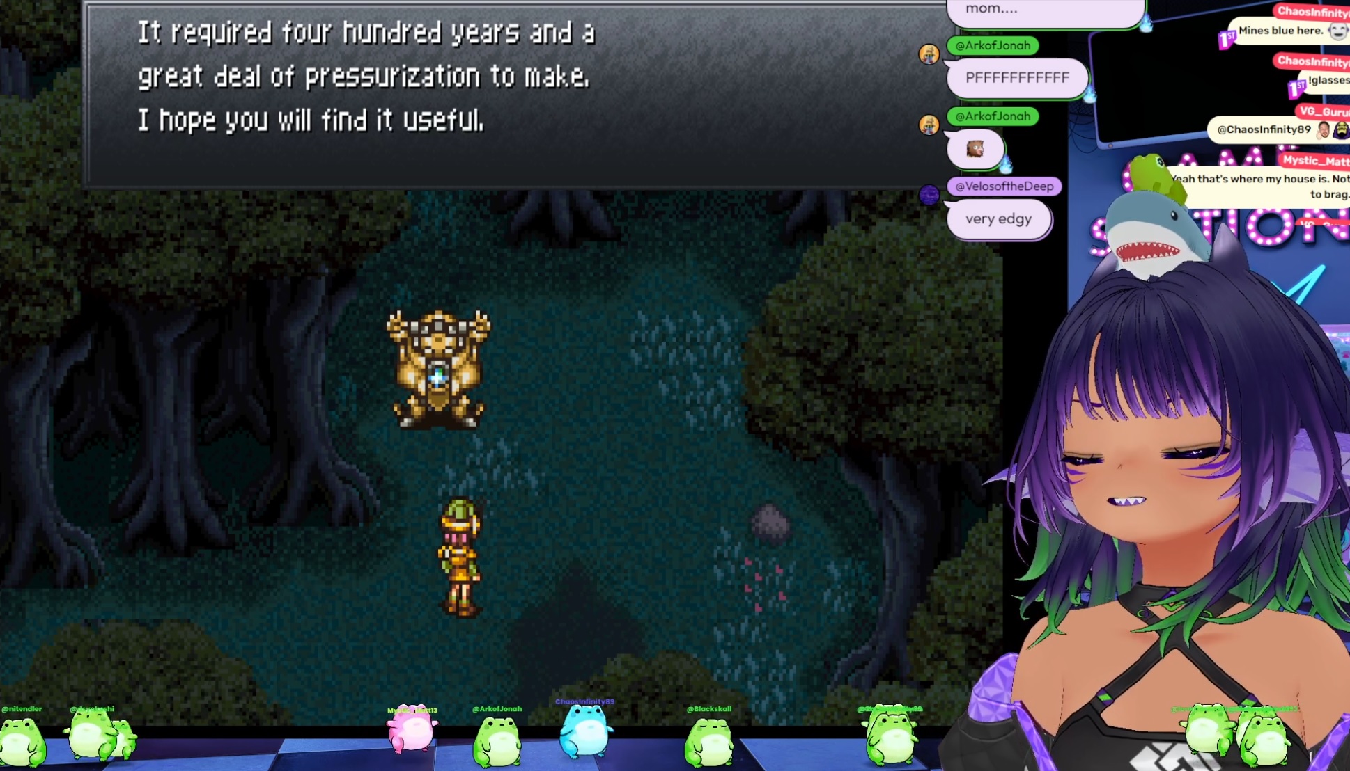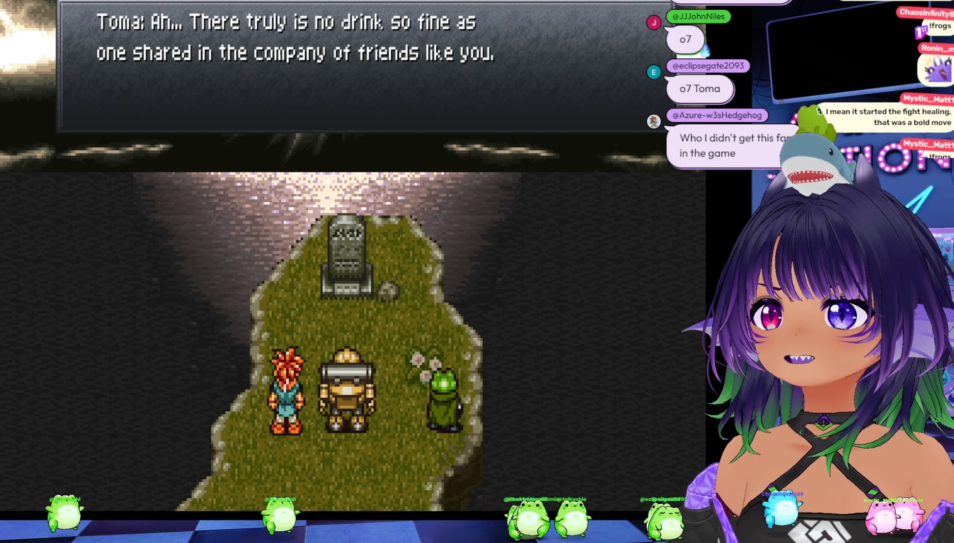This water animal vtuber is playing more Chrono Trigger for the first time and loving itThat's right Unagees https://www.twitch.tv/unagees