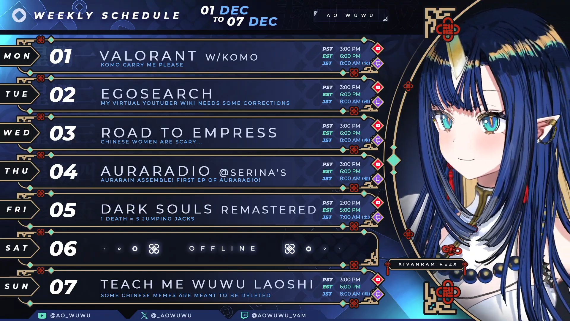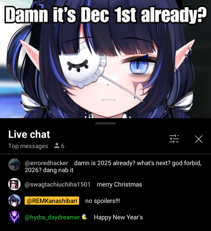>>107201685Current happenings:>Don't bite! Take it easy, okay? >MERCH MERCH MERCH MERCH>GET YAE AND LYKO DAKIS NOW https://shop.bravegroup-us.com/products/yae-yugiri-pillow-cover-official-pillow-cover-vol-2https://shop.bravegroup-us.com/products/lyko-lianna-pillow-cover-official-pillow-cover-vol-2 >Leftover shakers from VeXpo are up for grabshttps://waifuwares.co.uk/products/waifu-wares-x-kou_mariya-limited-editionhttps://waifuwares.co.uk/products/waifu-wares-x-bgus-rem-kanashibari-limited-editionhttps://waifuwares.co.uk/products/waifu-wares-x-dr-novae-limited-edition >Get AuraRain debut merch here! https://shop.bravegroup-us.com/collections/all-aurarain-merch>Get Nene's merch here! https://store.neonshrine.shop/collections/nene-amano >Get Petalight's anniversary merch here! https://shop.bravegroup-us.com/collections/petalight-2nd-anniversary-merch>bakenene merch will stick around till december 8th...! https://merch.kawaentertainment.com/collections/bakenene>Get REM's concert merch here! Last week! https://shop.bravegroup-us.com/products/rem-kanashibari-sleepover-stage-merch >The VSPO!EN team jackets are on sale! https://shop.bravegroup-us.com/collections/vspo-en-team-jacket-series >VSPO! Fes merch for VSPO! EN is now on sale! https://shop.bravegroup-us.com/collections/vspo-festival-2025-post-event-sales>You can get an Alias custom replica jacket! https://favorite-one.co.jp/view/item/000000018658 >Get V4Mirai's Second Anniversary merch here!! https://shop.bravegroup-us.com/collections/v4mirai-2nd-anniversary>Get V4Mirai Little Pixel keychains here! https://merch.kawaentertainment.com/products/v4mirai-little-pixel-keychains>PastelMelon x V4Mirai on now! Lyko, Yae and Poma are still in stock! https://www.pastelmelon.com/shop?Vsnacks=V4Mirai%2520Collection >Nova and REM (and Daiya) are joining a concert! https://x.com/MionAkuma/status/1994576517482123296>Nene is voice acting for a game! https://x.com/NeneAmanoVTuber/status/1994196804326380030>Okay so globie is exploding on December 31st but all the remaining talents will keep their IP https://x.com/globiesocial/status/1993983145369092483>And the globie store will close on December 15th so please keep in mind your plans for purchases https://x.com/globiesocial/status/1993990684668305429>Hope you enjoyed AuraRain's debuts! Here's the playlist in case you missed them https://youtu.be/Q65vOy1S9xkhttps://youtube.com/playlist?list=PL38BbaZiGZTefawJY9rRjXyXiygNsSBA9>Nova has a special thing this sunday stay on the lookout https://x.com/DrNOVAe/status/1993739511558504774>There will be an event! With a lot of the girls! In LA! Yeah! https://x.com/VtuberFanEvents/status/1993051457554428183>Nene announced her third solo concert! It's the first concert she's doing as an indie, please support her! https://youtu.be/uU8E2Cr0Ryk>There's another Charaforio fanart event coming up! https://x.com/Charaforio_en/status/1990691453056831891 >A new member of VSPO EN has debuted, Eris Suzukami! https://youtu.be/5Bx6FxWPHe4>Yae, Pillow, Nene and Bonnie joined Shura's VR Boxing event! It's EN vs ES so expect spanish! https://youtu.be/1-zuLS4DF6A>Day 2 here! https://youtu.be/ZeZ1a7huROE>REM HAD A SUPER COOL CONCERT WITH 20+ VTUBERS JOINING PLEASE WATCH https://youtu.be/O89eEKq21Fs>Lots of stuff happened, Mari has graduated, I'm taking the liberty to link an announcement https://x.com/EmiliyaFell/status/1976712080708583617>And here's V4Mirai's announcement https://x.com/V4Mirai/status/1976877368913592679 >Alias will be going on an extended break for her health, please send her love https://x.com/V4Mirai/status/1975020333867622616>Alicja turned DAMN into a browser extension! Add it to get daily Alicja voice messages! https://x.com/AlicjaDaLontano/status/1938321966231875884>As always please love and support the talents!>Listen to some recent covers!https://youtube.com/watch?v=o8bfb6THjP0https://www.youtube.com/watch?v=9Vk4K7jV1rk https://www.youtube.com/watch?v=xl6AIazOkRUhttps://www.youtube.com/watch?v=E0E2Tfd_f-I https://www.youtube.com/watch?v=wYJbBnOIqyo https://www.youtube.com/watch?v=rvO7PAJ2wT4 https://youtu.be/y57ZglXYYsI https://youtu.be/cERtOPdt5Mshttps://youtu.be/mcNbZI1FOjohttps://youtu.be/E3ciM8d2RSY https://www.youtube.com/watch?v=IWv-Rd-xfRU https://www.youtube.com/watch?v=03yS_UONPH0 https://www.youtube.com/watch?v=QM-m1DD7uS0 https://youtu.be/079YIGlgqUY