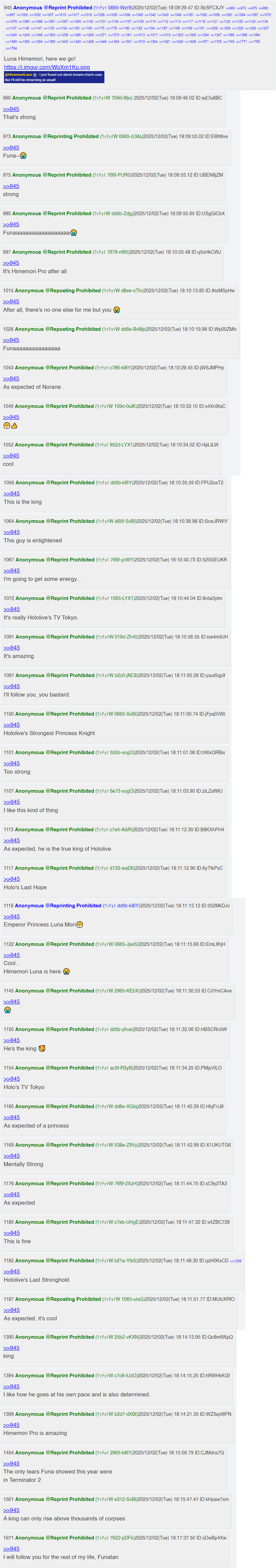 Himemori Luna ThreadXmas soon editionPrevious: >>106685785>YouTube channelhttps://youtube.com/@HimemoriLuna>Twitterhttps://twitter.com/himemorilunahttps://twitter.com/lunatan_nanora>Tiktokhttps://www.tiktok.com/@himemoriluna_hololive>Official websitehttps://hololive.hololivepro.com/talents/himemori-luna/ORIGINALS>Music Videoshttps://www.youtube.com/playlist?list=PL6gUpTCMieF6lpjU_w9OSK1GjZmYNF3pf>Nano Nanorahttps://cover.lnk.to/Nanonanora>GuruGuru Mawarunahttps://cover.lnk.to/RoundandRoundandCircLuna>Mannaka-Chitenhttps://cover.lnk.to/Mannaka-Chiten>Escort me! Luknighthttps://cover.lnk.to/1kcMepGROUP ORIGINALS>Fujun Mujun w/ Pekora, Koyori, Koronehttps://youtu.be/KBHzYs5OMmE>Idol 10 rules w/ Okayuhttps://youtu.be/Ml-e4VomFcE>Jigokudeaouze! Subachocolunatan w/ Subaru, Choco, Botanhttps://cover.lnk.to/subachocolunatanhttps://youtu.be/ao3DUIEaO4c>HajimarinoMahou-charm- w/ holoWitcheshttps://cover.lnk.to/HajimarinoMahouhttps://youtu.be/sM1YO_FwZUY>On your side w/ holoWitcheshttps://cover.lnk.to/wO3nbHhttps://youtu.be/aLrPFKO_aEUCOVERS>Cinderellahttps://youtu.be/piy9fTZRoZk>Kyoufuu All Backhttps://youtu.be/YyjRdFjil68>World Is Minehttps://youtu.be/gGrEc0qOxFI>Platinum Discohttps://youtu.be/2oLkdkuqTGM>Fuwa Fuwa Timehttps://youtu.be/6YrsEak8Ju4>Sʼil vous Presidenthttps://www.youtube.com/watch?v=chug-SRVKqM>Get Wildhttps://www.youtube.com/watch?v=DahhVhBqLEYGROUP COVERS>Cherry Bomb w/ Subaru, Chocohttps://youtu.be/BAx2GtYGJxs>Kami no Manimani w/ Subaru, Chocohttps://youtu.be/MQ-QnXZR4mc>Hikaru Nara w/ Subaru, Choco, Botanhttps://youtu.be/Z4OGadyN61k>BANG!BANG!BANG! w/ Subaru, Choco, Botanhttps://youtu.be/FeTI1Hh-BdU>Daishikyu Daishiyuki w/ Polkahttps://youtu.be/dbJ38bvuKD0>Shuumatsu ga Yattekuru! w/ Kanatahttps://youtu.be/eJGZ3iyA_SA>Shukusei!! Loli-Kami Requiem w/ Kanata, Azkihttps://youtu.be/shXDiB3CZ60>Curse w/ holoWitcheshttps://youtu.be/wnjuq2cX2JM>Ojamajo Carnival!! w/ holoWitcheshttps://youtu.be/BPI8aQ0xhQg>Watashino Ichiban Kawaiitokoro w/ Iofi, Fuwamoco and Mikohttps://youtu.be/A4W8K7g4Ujg>Moonlight Legend w/ holoWitcheshttps://www.youtube.com/watch?v=54TvG--sg8cNew original song Nnashoi Passion!https://www.youtube.com/watch?v=owSX1vys9FIhttps://files.catbox.moe/wsvp3l.txt OP pasta