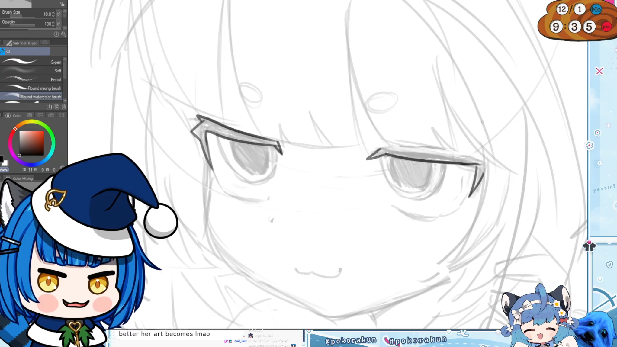 >draws this and complains she can't drawPoko is having an artist moment.