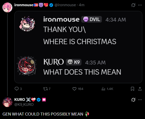 >no irl>no sponsorMouse has no reason to go live tonight still unless she intentionally wants to ruins people's days selfish bitch only thinking about herself no wonder Nyan is avoiding her even after Vshojo been exposed