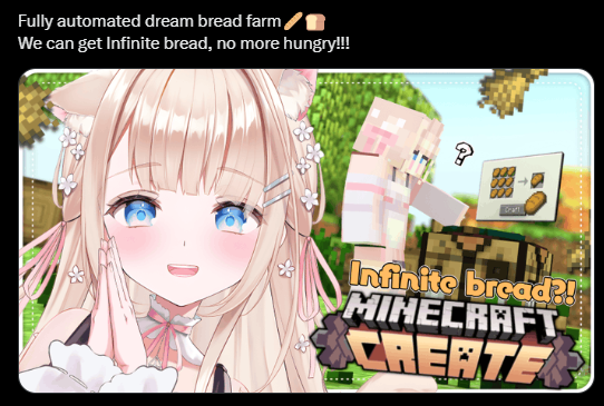 >>107246474She always really enjoys playing modded Minecraft with the Create mod. She also just finished making her automated bread machine.