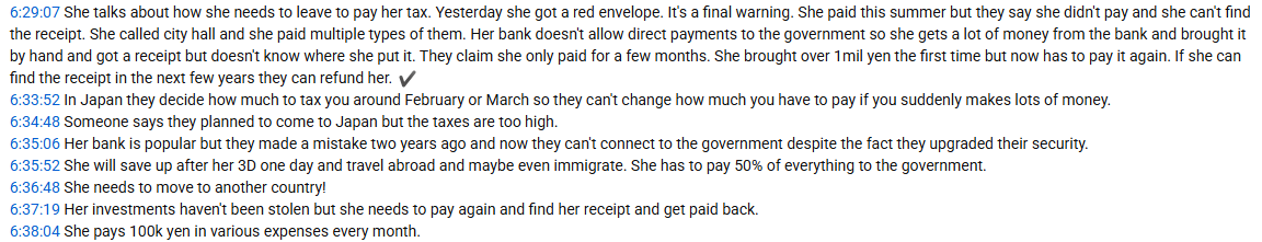 Peo said that she'll have to pay all the taxes she already paid before again, but if she finds the receipt from when she originally paid them within the next few years they'll pay her back. It's around 1 million yen.https://www.youtube.com/watch?v=9pLeHy5XFIY&t=23347s