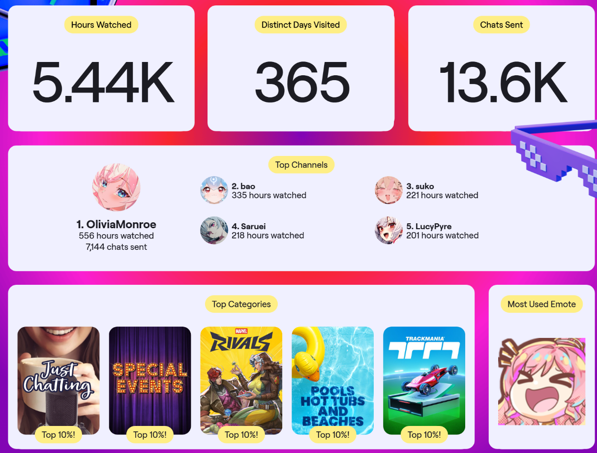 Twitch recaps are in (https://www.twitch.tv/annual-recap), any /big/ changes in watch habits for 2025?