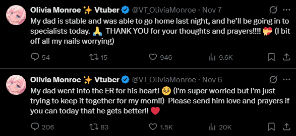 >>107272902According to /lig/ her dad's had health problems and might have had a heart attack recently.