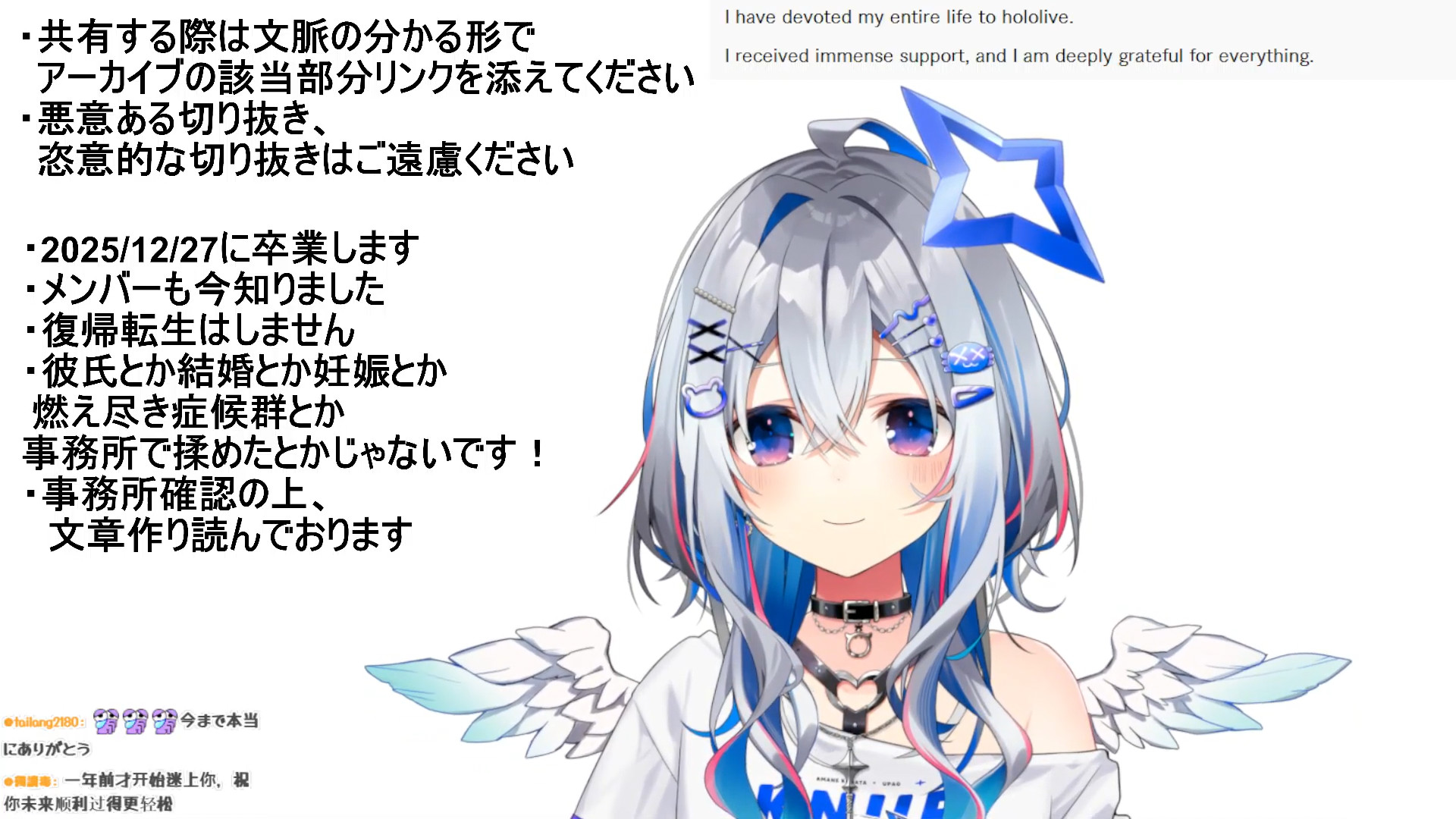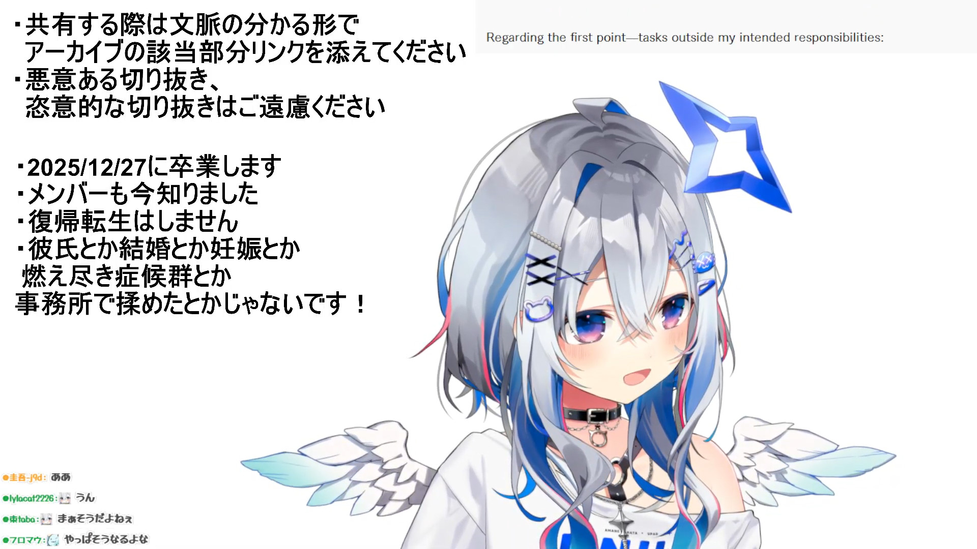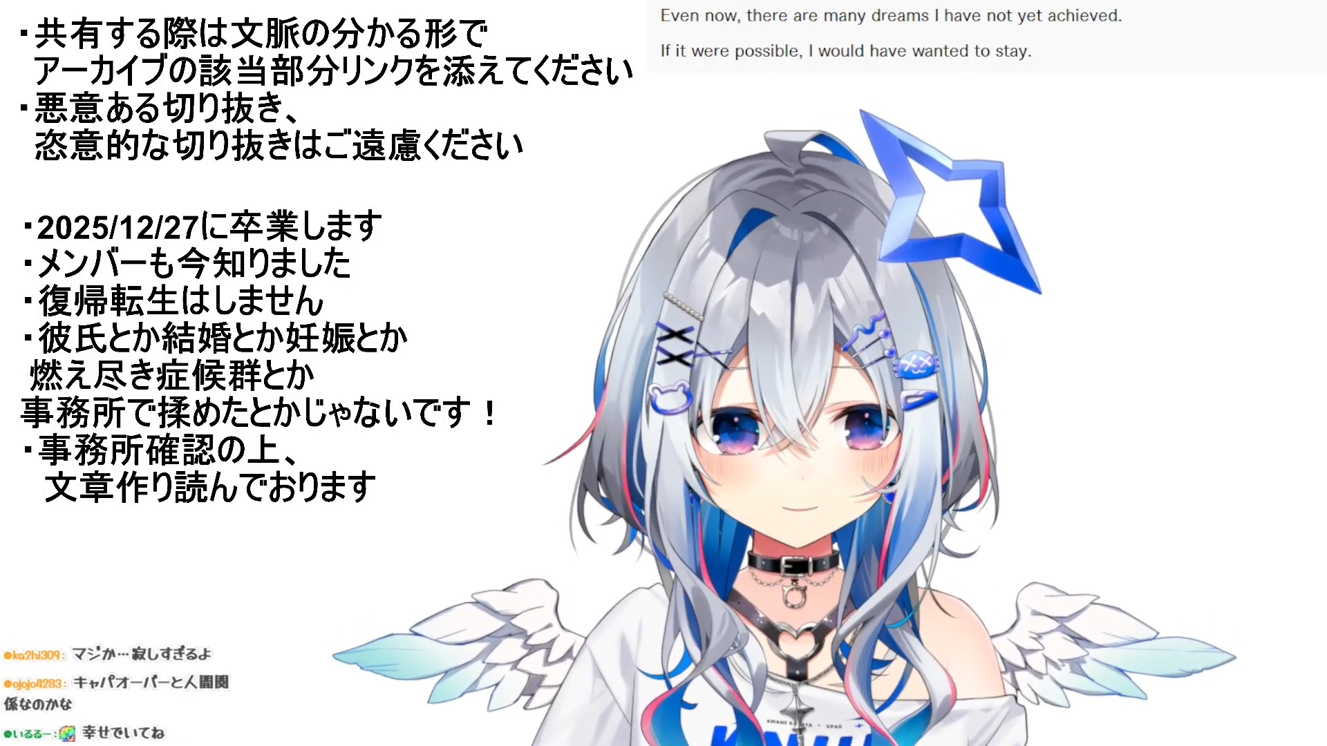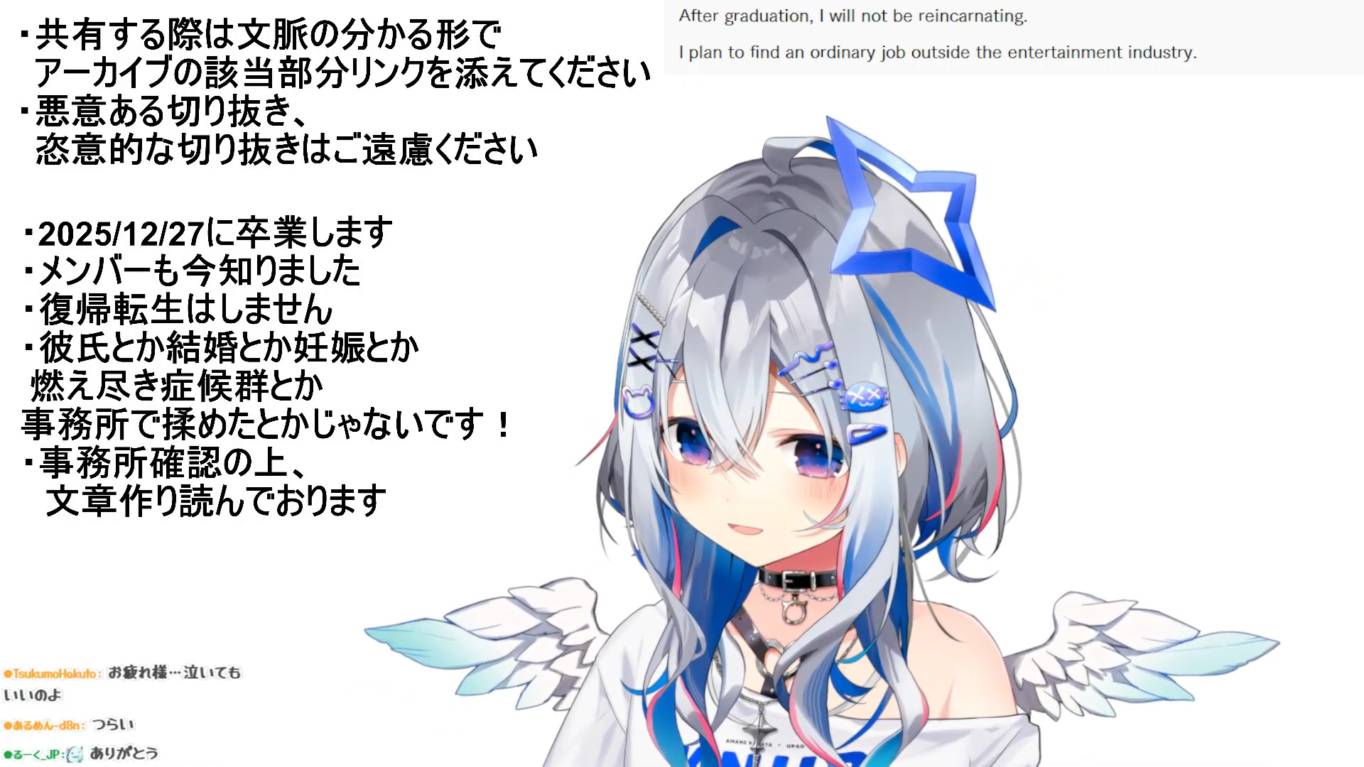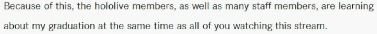Something I've learned as a fan of vtubers and regular streamers over the years is that you cant maintain a long term streaming career unless you completely control the amount of time you put into it.Schedules and events, even when self-imposed, will inevitably lead to burn-out and pain over a long enough period of time.I think corpo vtubers are inherently predisposed to graduating early unless the person is a deranged workaholic.