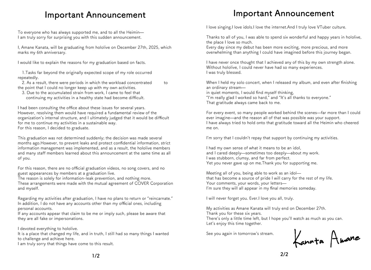 How hard is it for hololive not to crush their sick talents under a massive workload. Kanata was the only holo that I TRULY cared about. Seriously wtf