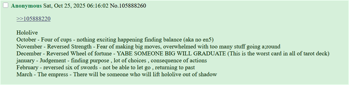 >>107255418This is a Gura situation all over again. Everyone who left from Aqua to Mumei was connected or really close to Gura in some way. I think whatever happened to Fauna that pushed her out early was the tipping point both for Gura and Mumei.Marine was one of the JPs that was always really nice and supported Gura, being a fan of hers. So Gura graduation also heavily affected her. Point is if this is a Gura situation with Marine then at some point Marine will hit her breaking point, it's when now rather than if.