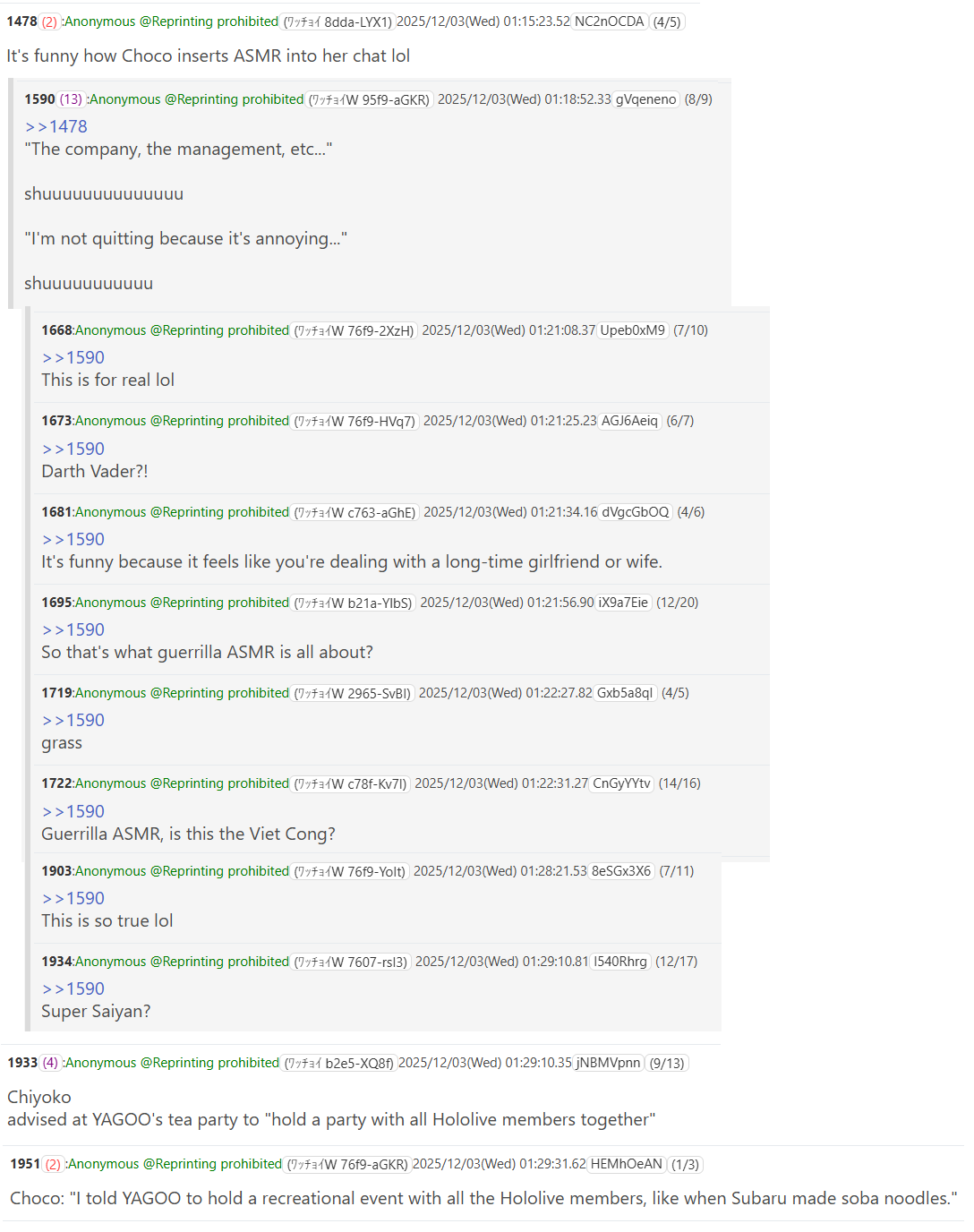 >>107278748It's always Mococo. I would have listened to one of the ASMR but she always makes a loud noise or laughs and ruins it.