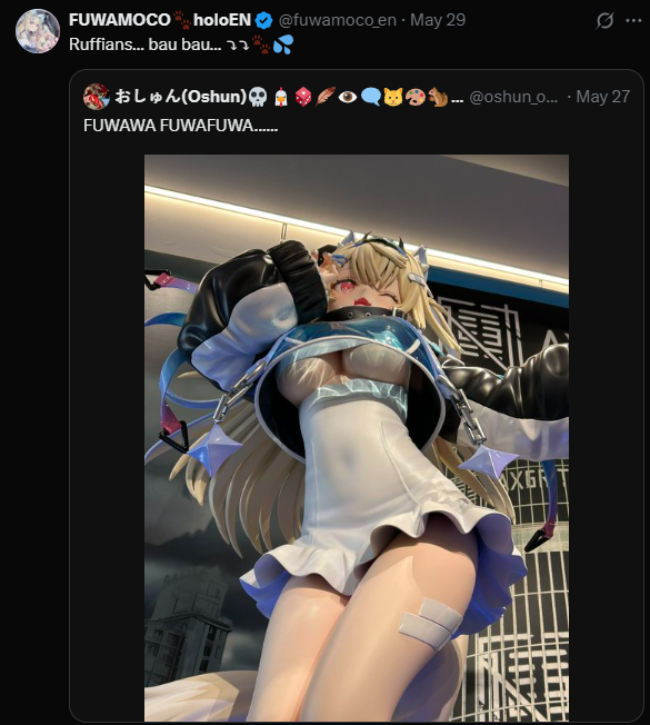 Fuwawa is not aware of the power she has. She innocently requests footage of herself that sends any red blooded man into a frenzy. She has no idea how badly the Ruffians want her.