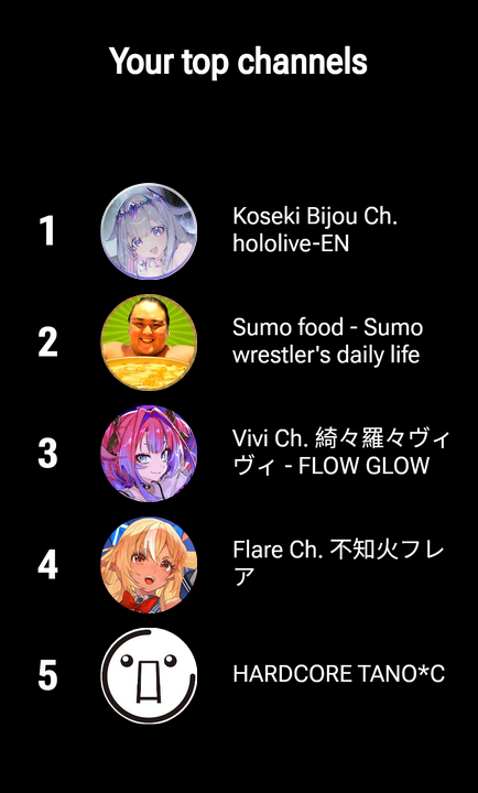 >>107315485>stackshah, stack.>watch timeIt's not the same because it's the YouTube Music Recap but it was nice to see how many times I've listened to Rock In