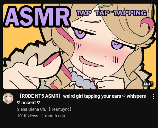 This thread is for the discussion and discovery of English-speaking VTubers who do ASMR.>Ongoing streamshttps://vt.rita.moe/?tag=genre:ASMR&tag=lang:Englishhttps://vt.rita.moe/?tag=thread:/tingles/https://asmrfarm.com/ (Mixed JP/EN)Rentry with useful information: https://rentry.org/tinglesveeteeVTuber ASMR playlists: https://www.youtube.com/@tinglesanonPrevious thread: >>107281319