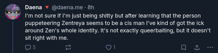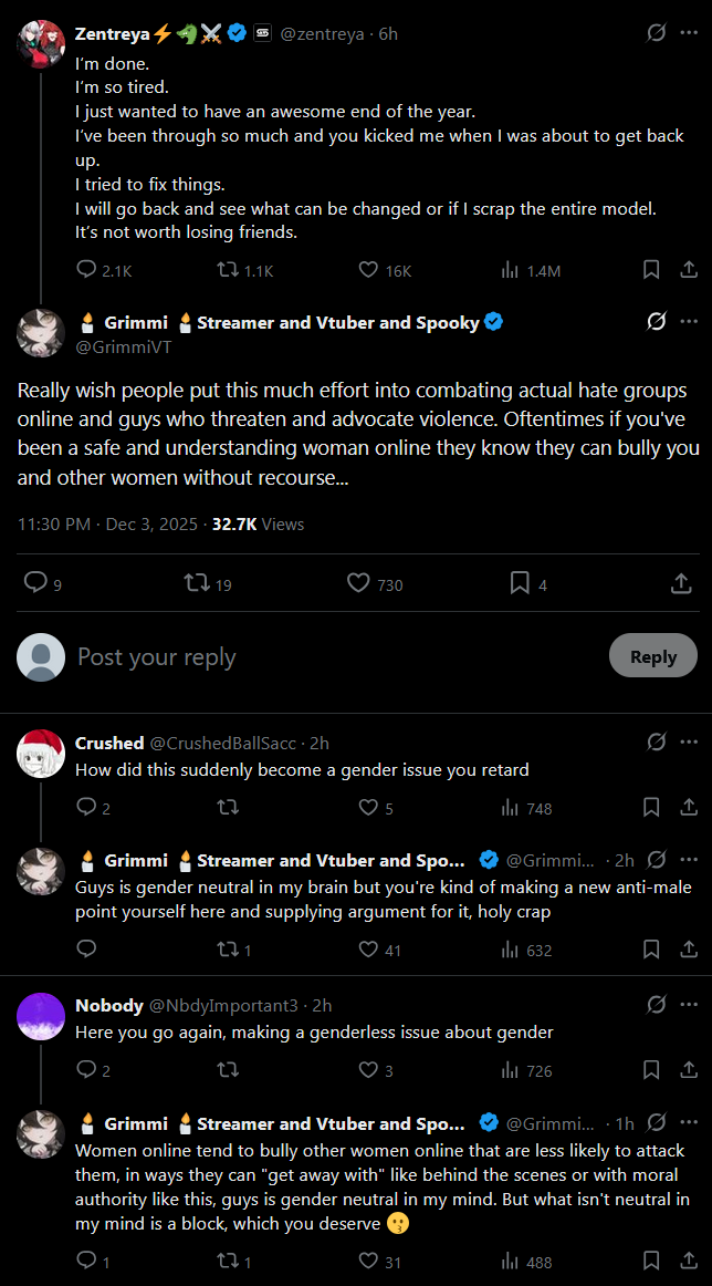 >>107321605To be fair, if you type Zentreya on that hellhole that's all they talk about it, somehow Zen saying "overly woke" turned into "woke snowflakes" to them.