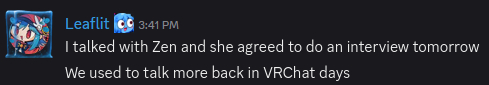 >>107321215I don't care, honestly. I'm not gonna go apeshit just because Zen knows Leaflit since forever.