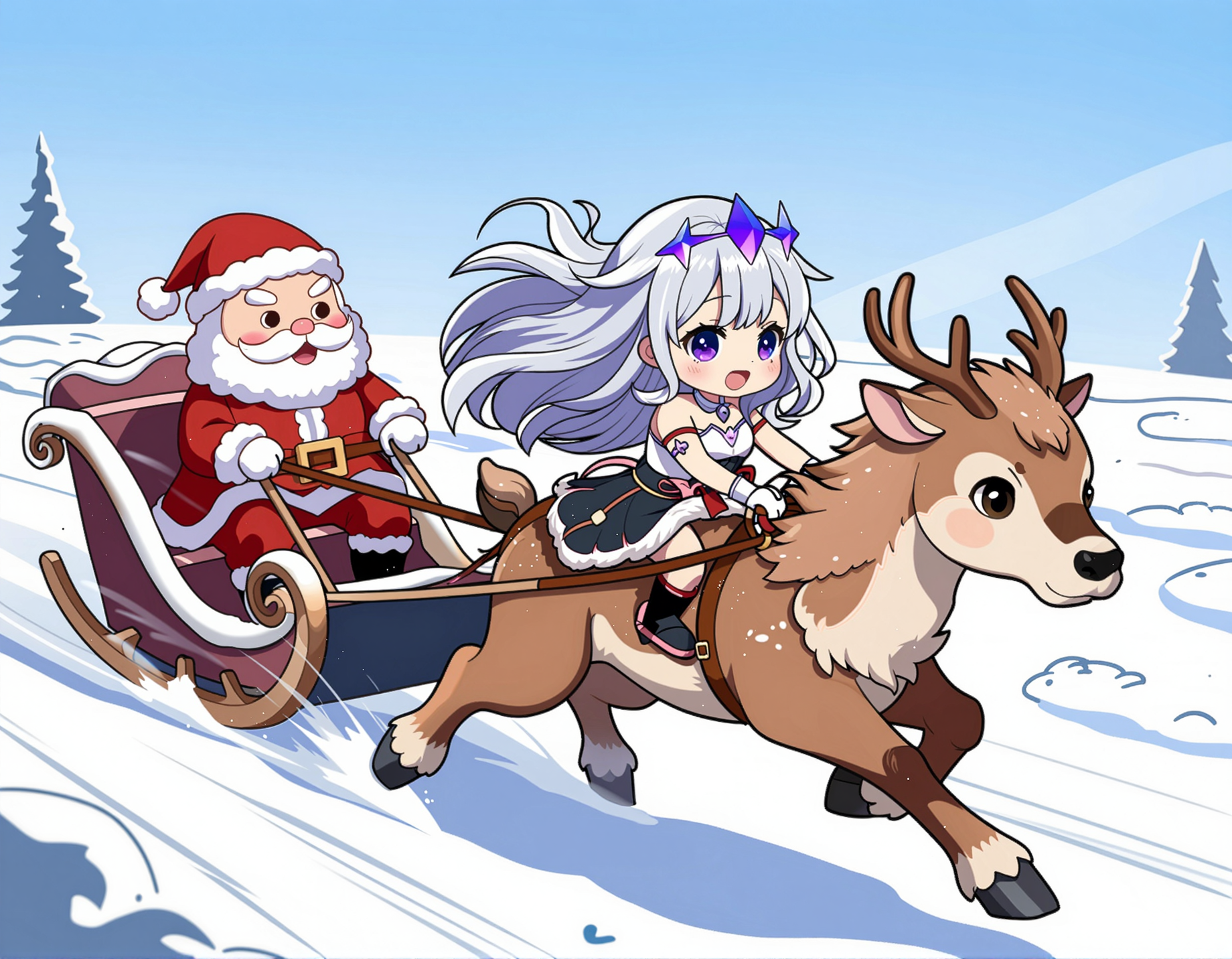 >>107317652Requesting Sana relaxing on a couch in a Christmas decorated room eating a gingerbread house on a plate she is holding. Shes wearing a deep neck t-shirt and shorts. A gingerbread man is lodged in her massive cleavage, along with some lucky crumbs. Thick thighs and huge breasts for big space lady