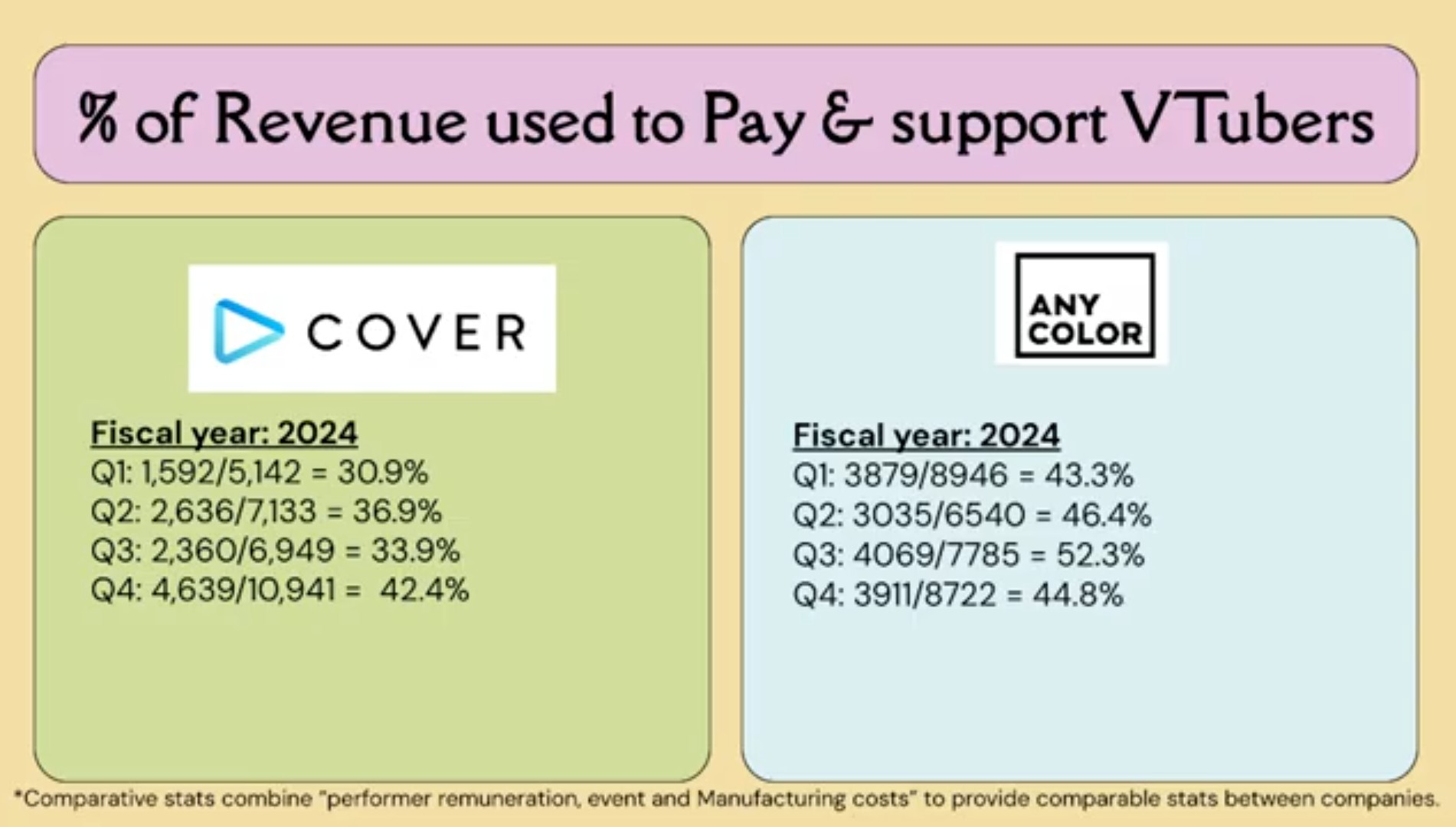 This is why Anycolor's stock price is much higher than Cover's. There are enough vtubers willing to join the corpo even if they get paid crumbs