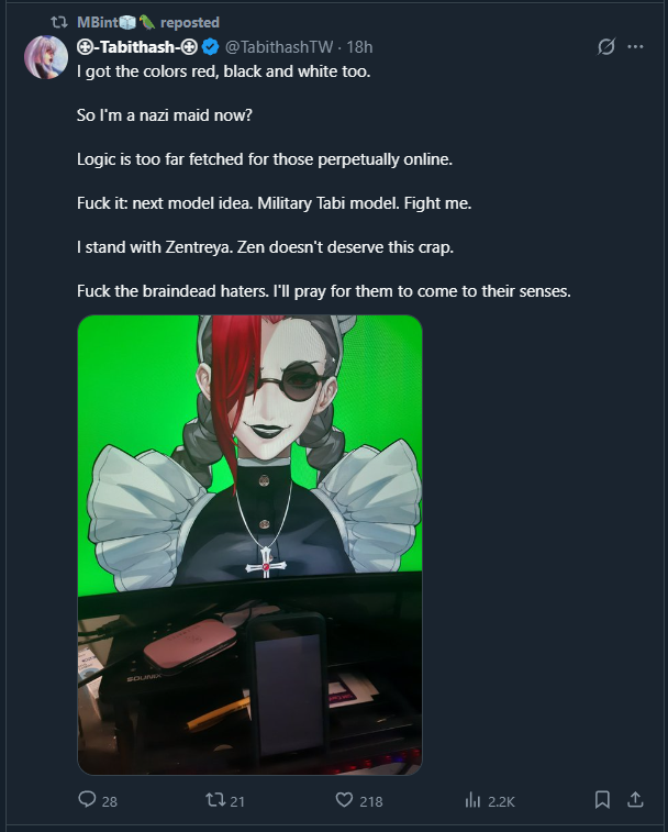 >>107340943Really hope Zen takes the time to denounce them because these are the people actually going after people she likes. She dug herself in this deep and the only way to remove that stench is to say something. Otherwise she'll end up with the Henya problem.>>107340940Watch streams.
