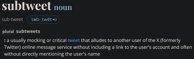 >>107340417what is sub tweeting?and what does holier than though mean in this instance?