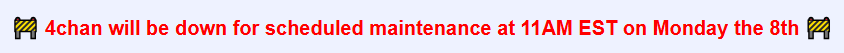 >4chan will be down for scheduled maintenance at 11AM EST on Monday the 8thrrats?