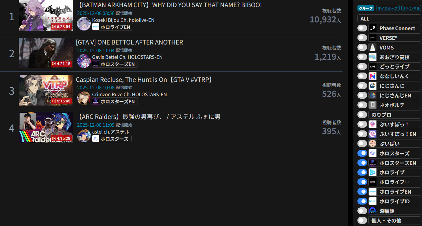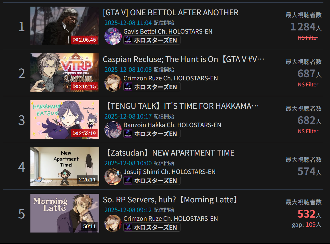 *GENERAL NUMBERFAG SITES*>https://playboard.co/en/>http://ikioi-ranking.com/>https://vrabi.net/>https://www.vstats.jp>https://live-ranking.userlocal.jp/vtuber-rankingHololive sites>https://www.hololyzer.net/youtube/index.html>https://trackholo.live/en/>https://holo-spotify-stats.jirikunes.eu/Twitch sites>https://sullygnome.com/>https://twitchtracker.com/>https://stats.roki.sh/>https://streamscharts.com/