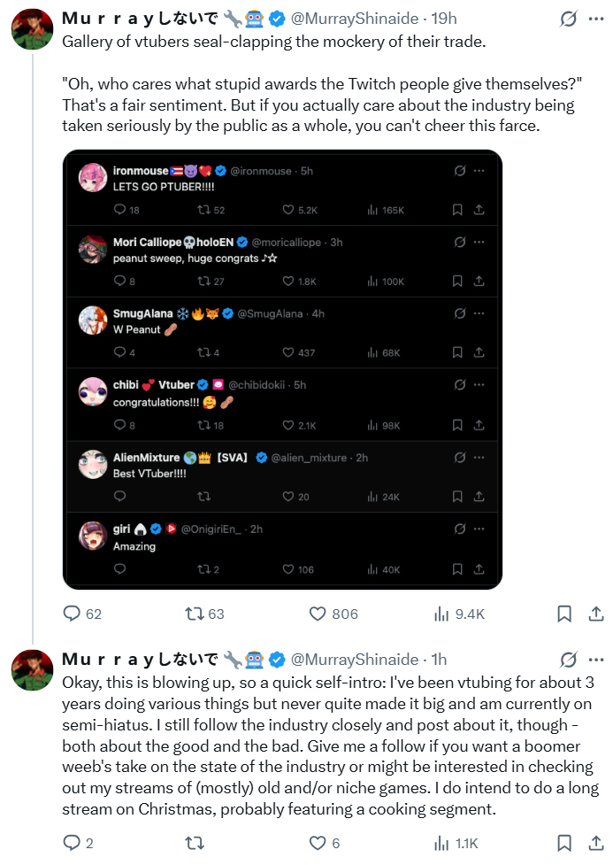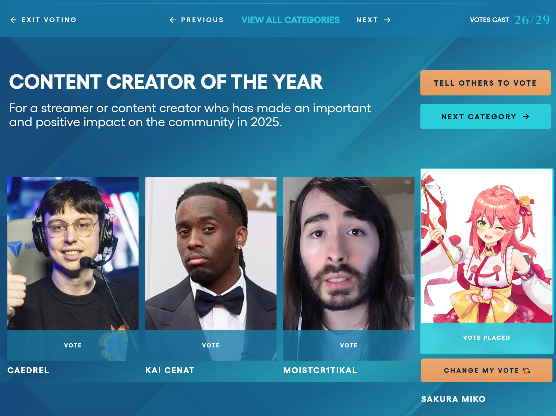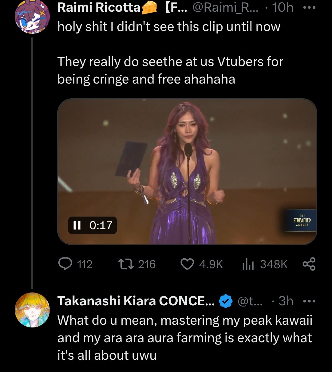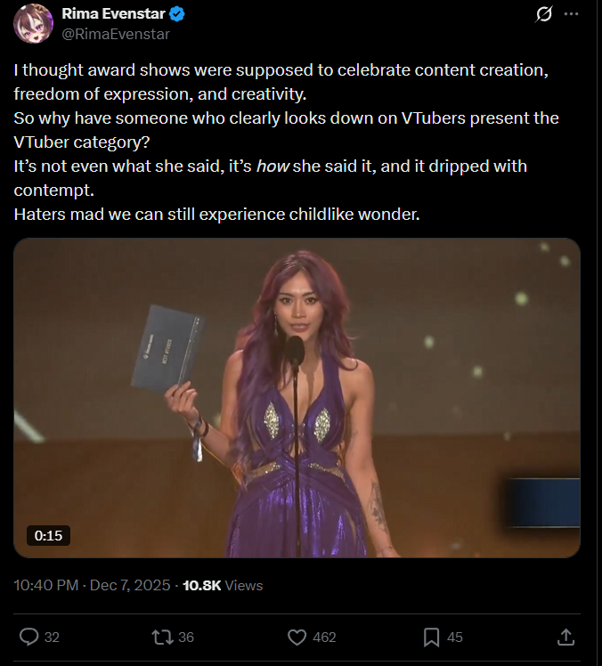 >>107459281It's impossible for her to win, unless... tga was monitoring the Streamer awards.