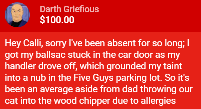 >>107459127>sending dozens of $100 SCs to trollthat's crazy