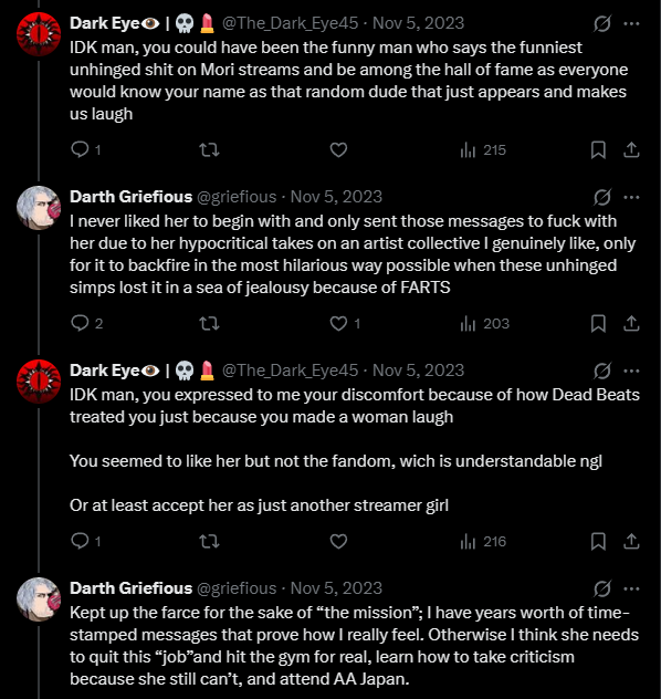 >>107459323he actually did the usual doxposting later on in that convo (I didn't include it for obvious reason), the more "Mori" Mori has became the bigger his resentment and delusion of self-grandeur grew obviously, I thinks those are unironic symptoms of schizoid disordersI thin getting too much money with too little effort just breaks people's brains in a bad way