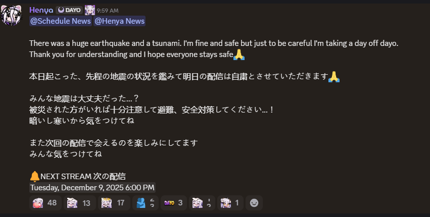 >>107465975After Christmas, Numi said she would be back on like the 27th so expect the same or longer for Michi.