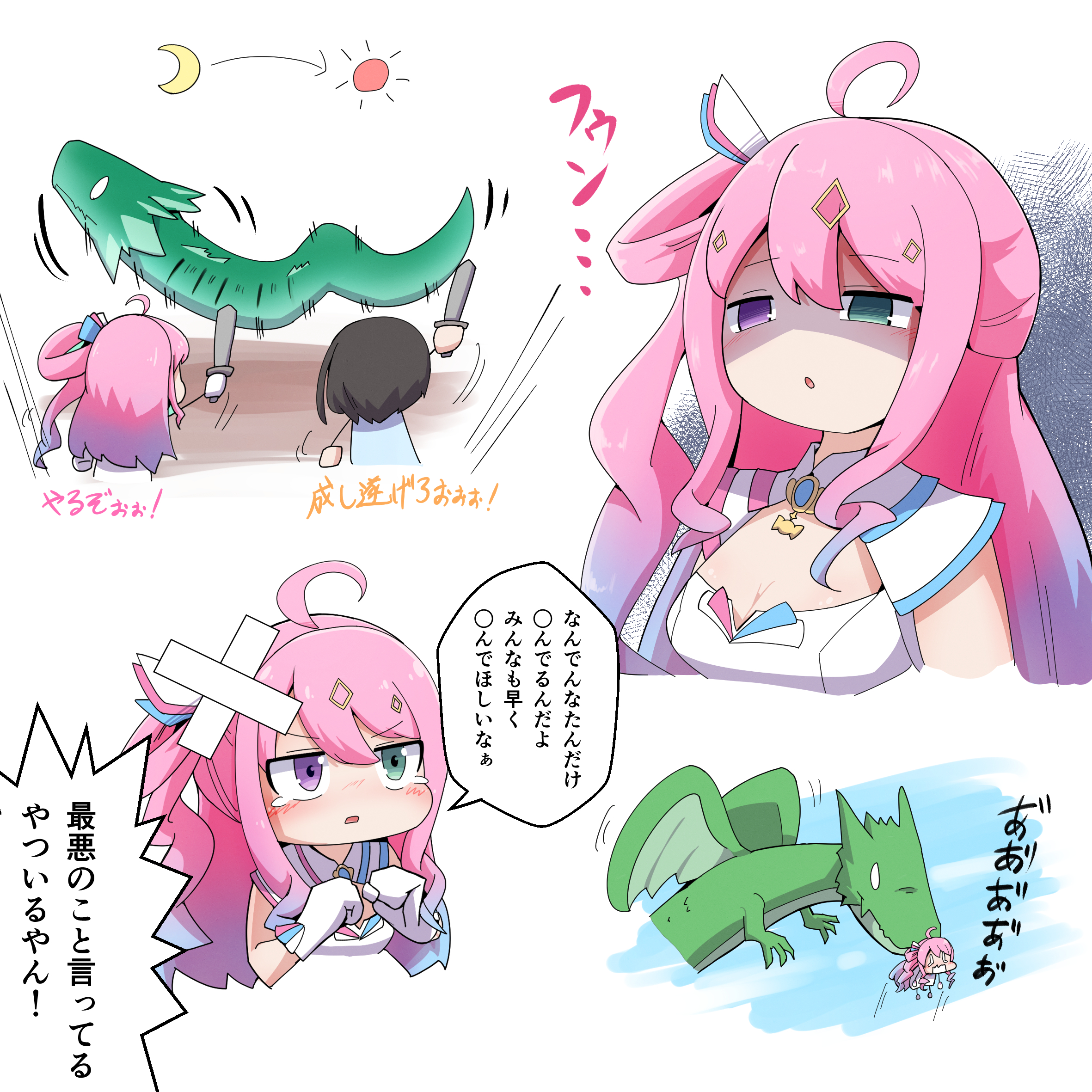 Hime cheering for the dragon against the group because she died