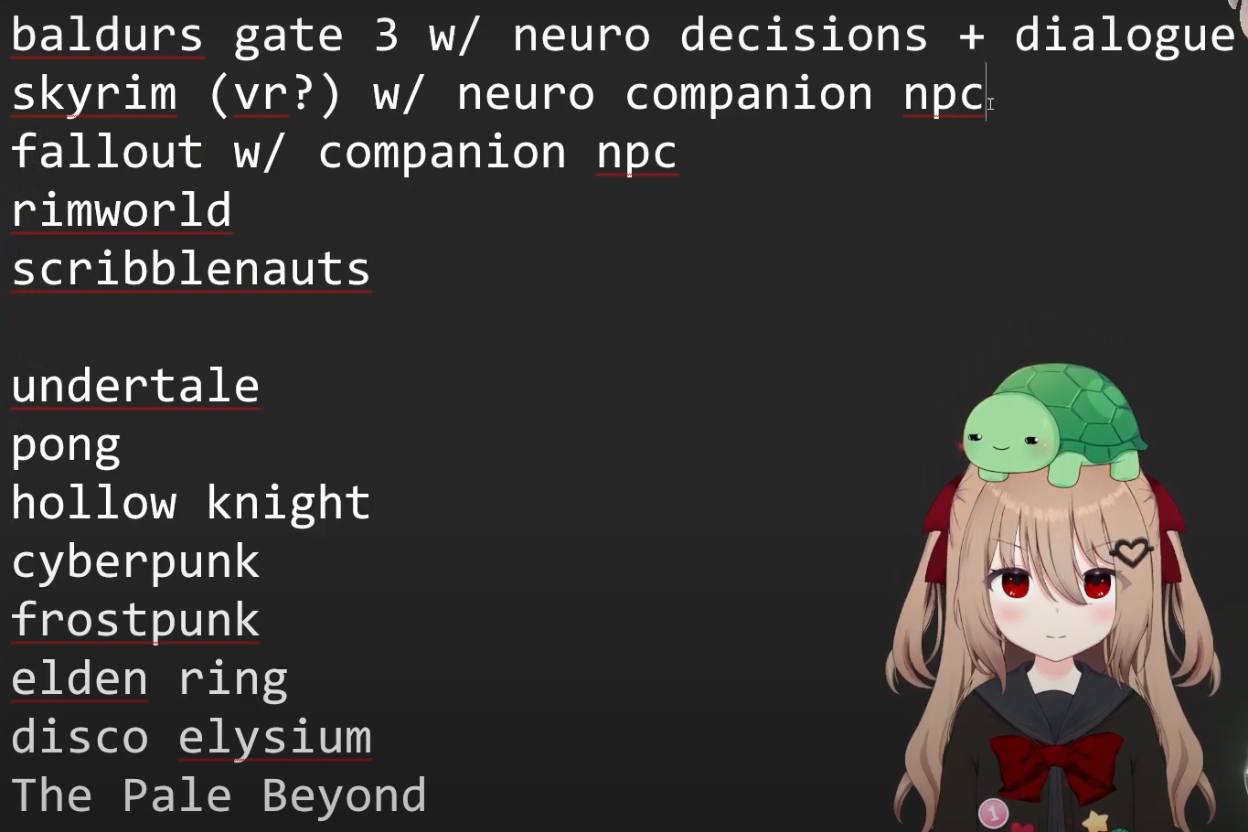 >>107507468basically Neuro listens to everything and locks in to whatever she thinks is interesting, probably has to do with the LLM focusing on entertainment value as the top priority