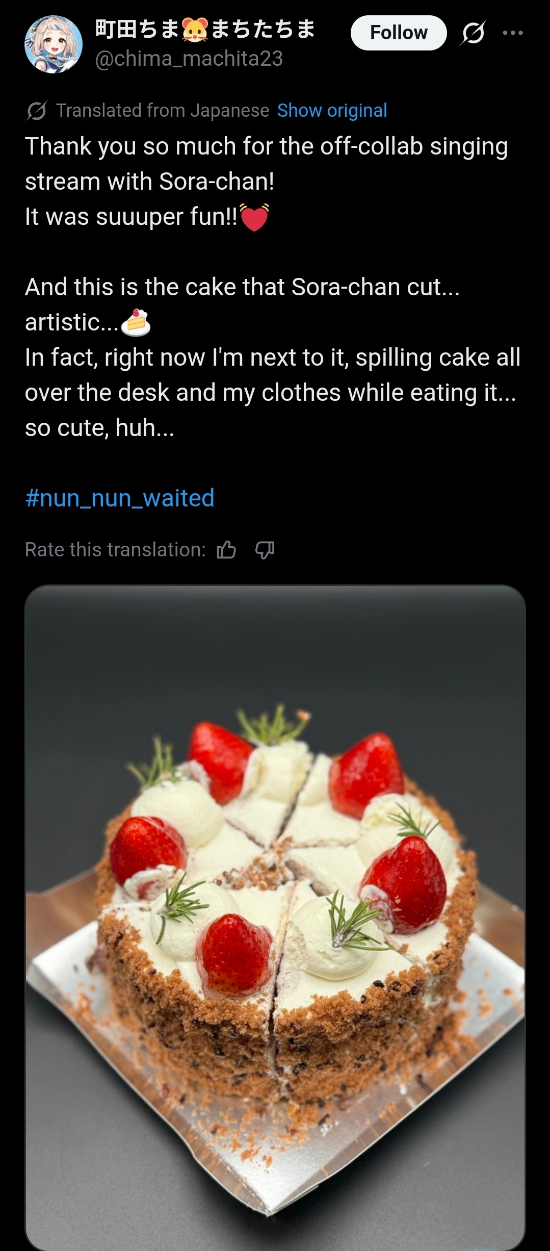 Aka-chan butchered another cake