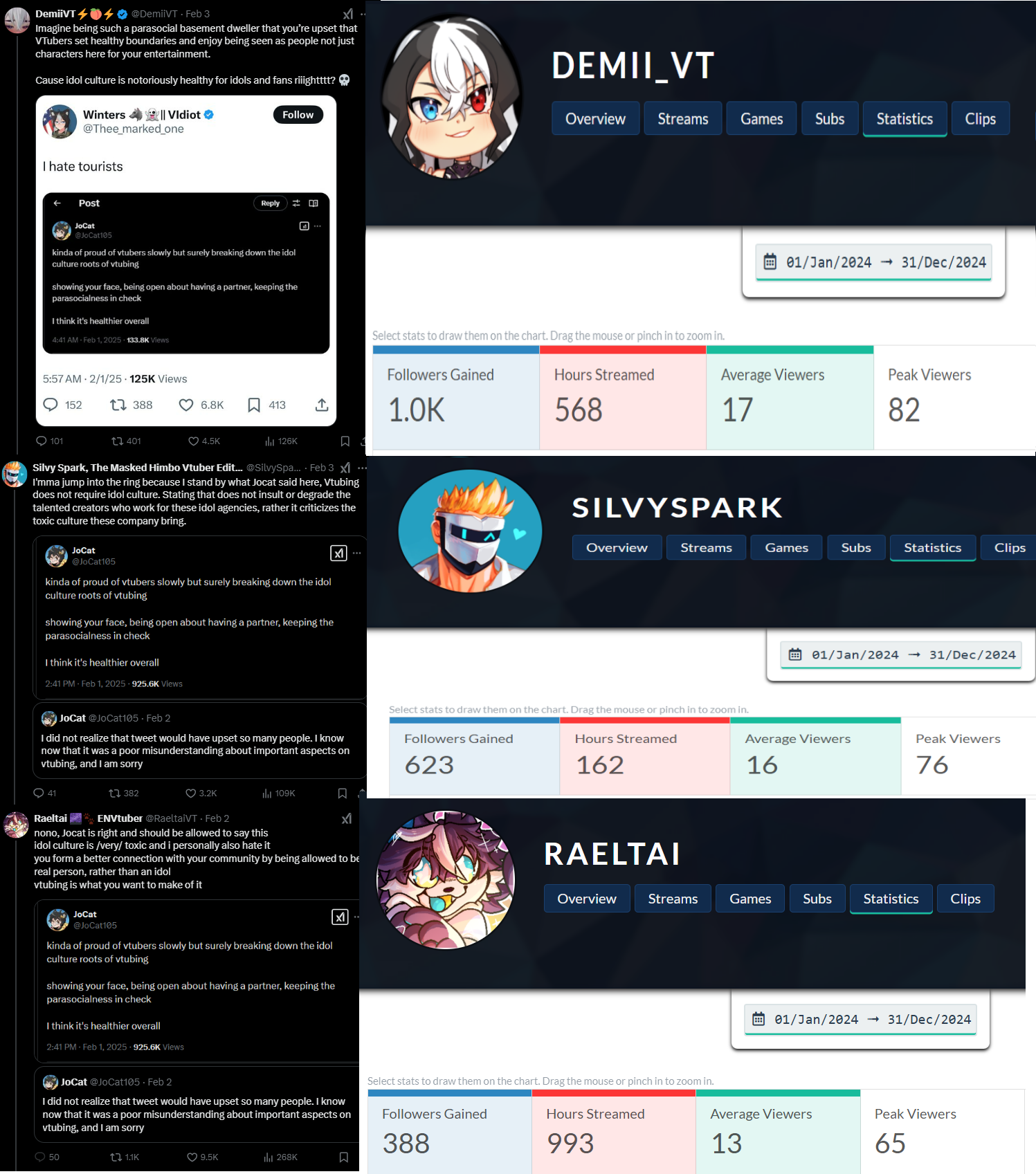 *GENERAL NUMBERFAG SITES*>https://playboard.co/en/>http://ikioi-ranking.com/>https://vrabi.net/>https://www.vstats.jp>https://live-ranking.userlocal.jp/vtuber-rankingHololive sites>https://www.hololyzer.net/youtube/index.html>https://trackholo.live/en/>https://holo-spotify-stats.jirikunes.eu/Twitch sites>https://sullygnome.com/>https://twitchtracker.com/>https://stats.roki.sh/>https://streamscharts.com/