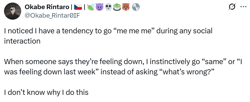 >>107533592>rintardoI stopped paying attention to him because 90% of his feed became "Oh I'm an incel" "Oh I want to kill myself">>107533587Last time I posted shit here a bunch of them privated their accounts and deleted specific tweets I had bookmarked, I don't want to follow these people so no.