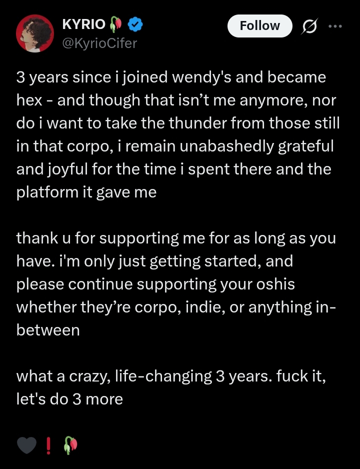 >>107539731i didn't say his approval matters, i just mean he doesn't hate niji like anons think he does. i think his main reason for leaving is that he became popular too fast, and he was too menhera to handle it