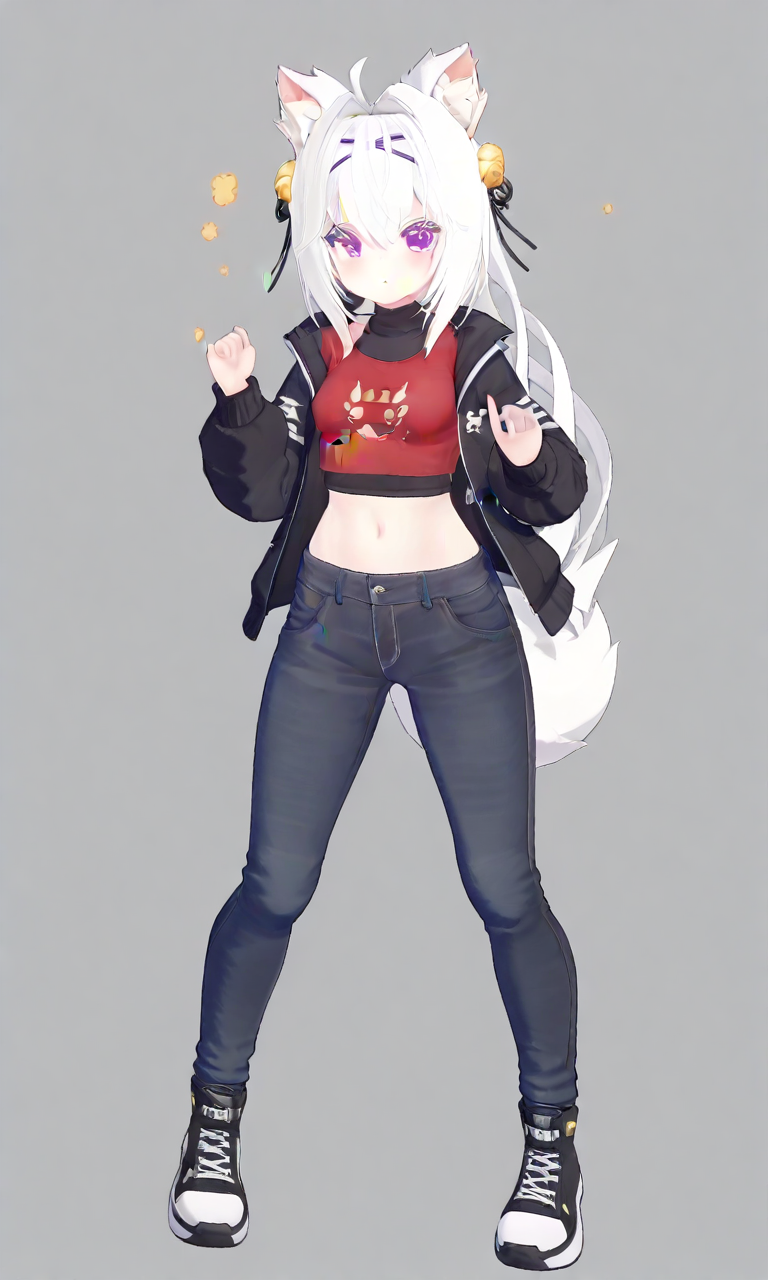 White haired and bushed kemonomutt girl(?). Hyperactive HDMI zoomer vtuber. Fruit snack goblin. She does her best to entertain her fans!