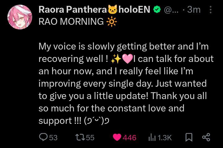 Good morning, I love Raora Panthera from Hololive English Justice